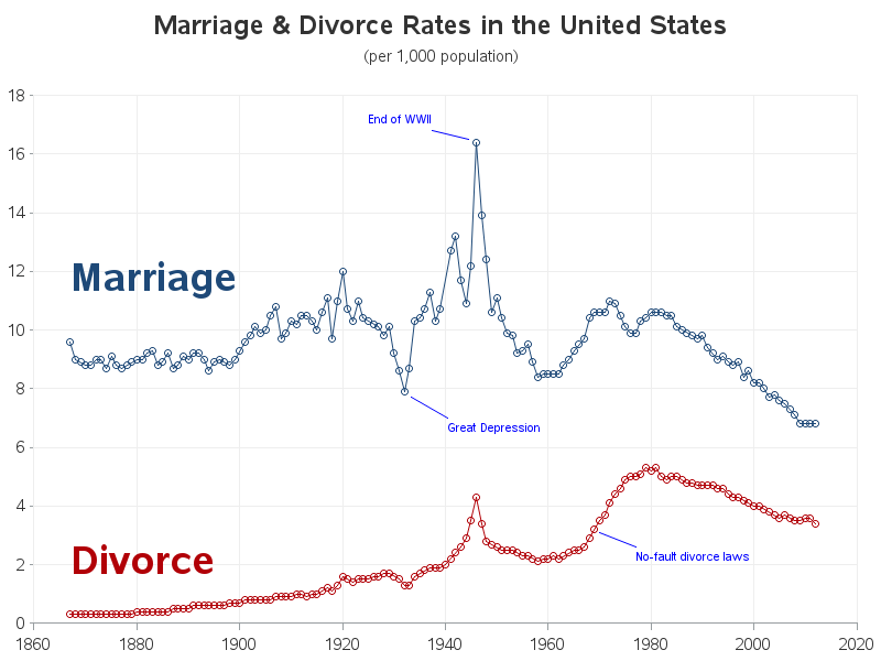 • No-fault divorce laws (1969)